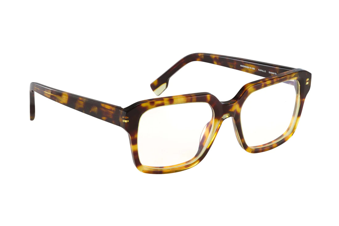 Various materials include: Acetate. Wood. Titanium. Stainless Steel. Wood. Leather.